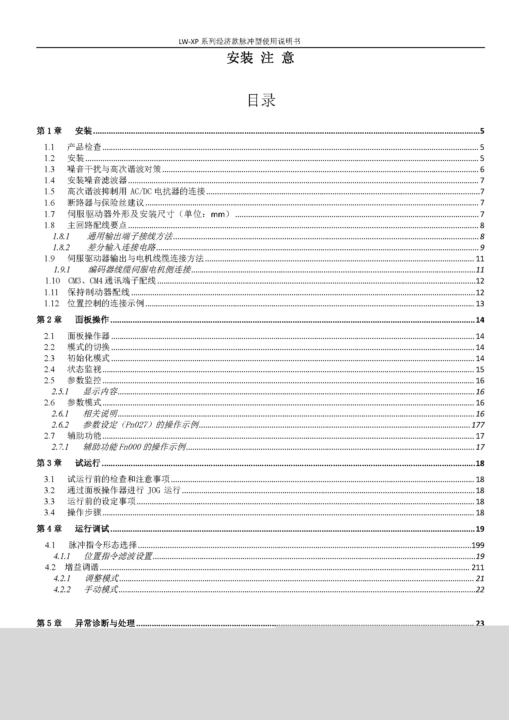 LW-XP,系列,脈沖型,伺服,驅動器,說明書,3.0,